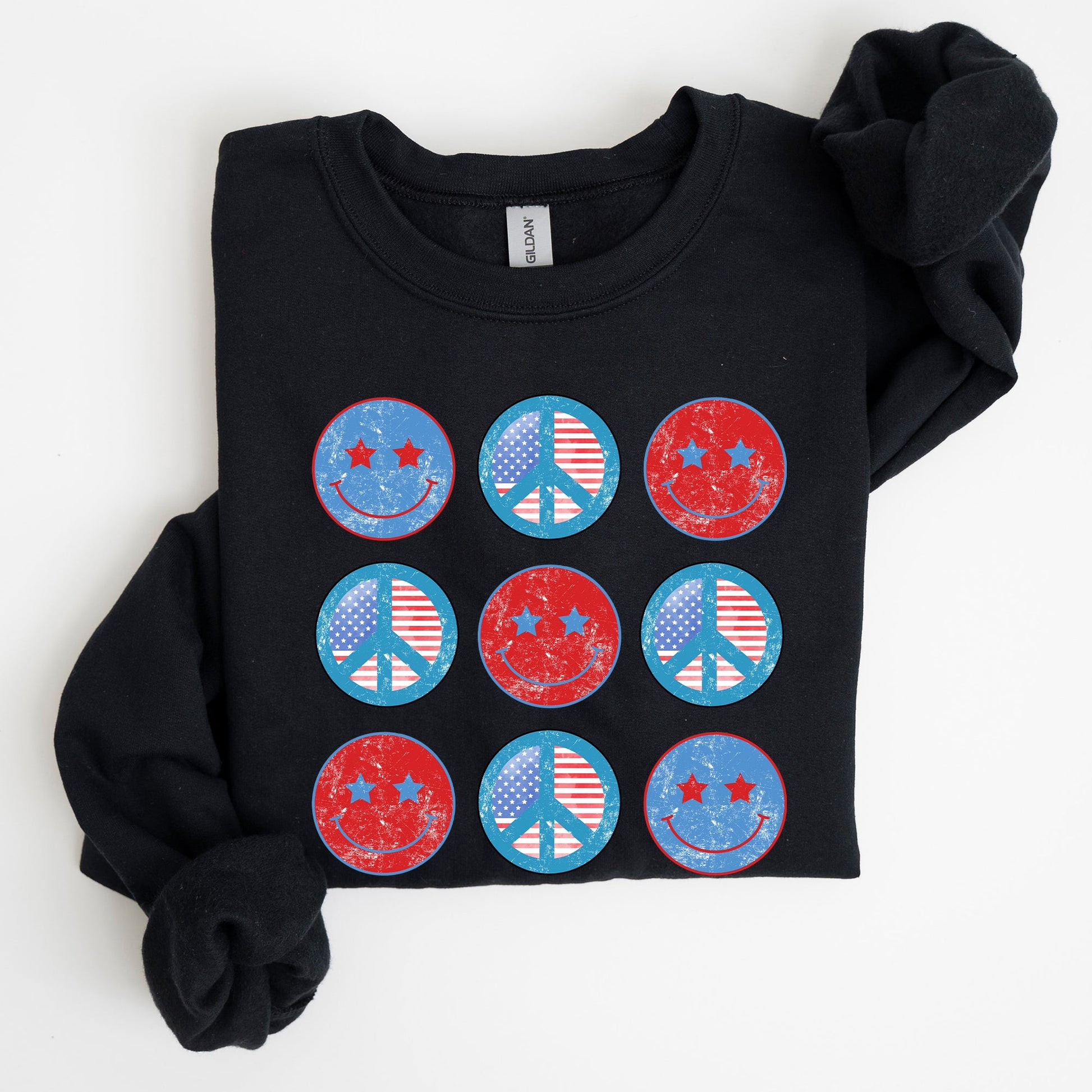 Retro Patriotic Smiley, Flag, America, Peace, Sweatshirt