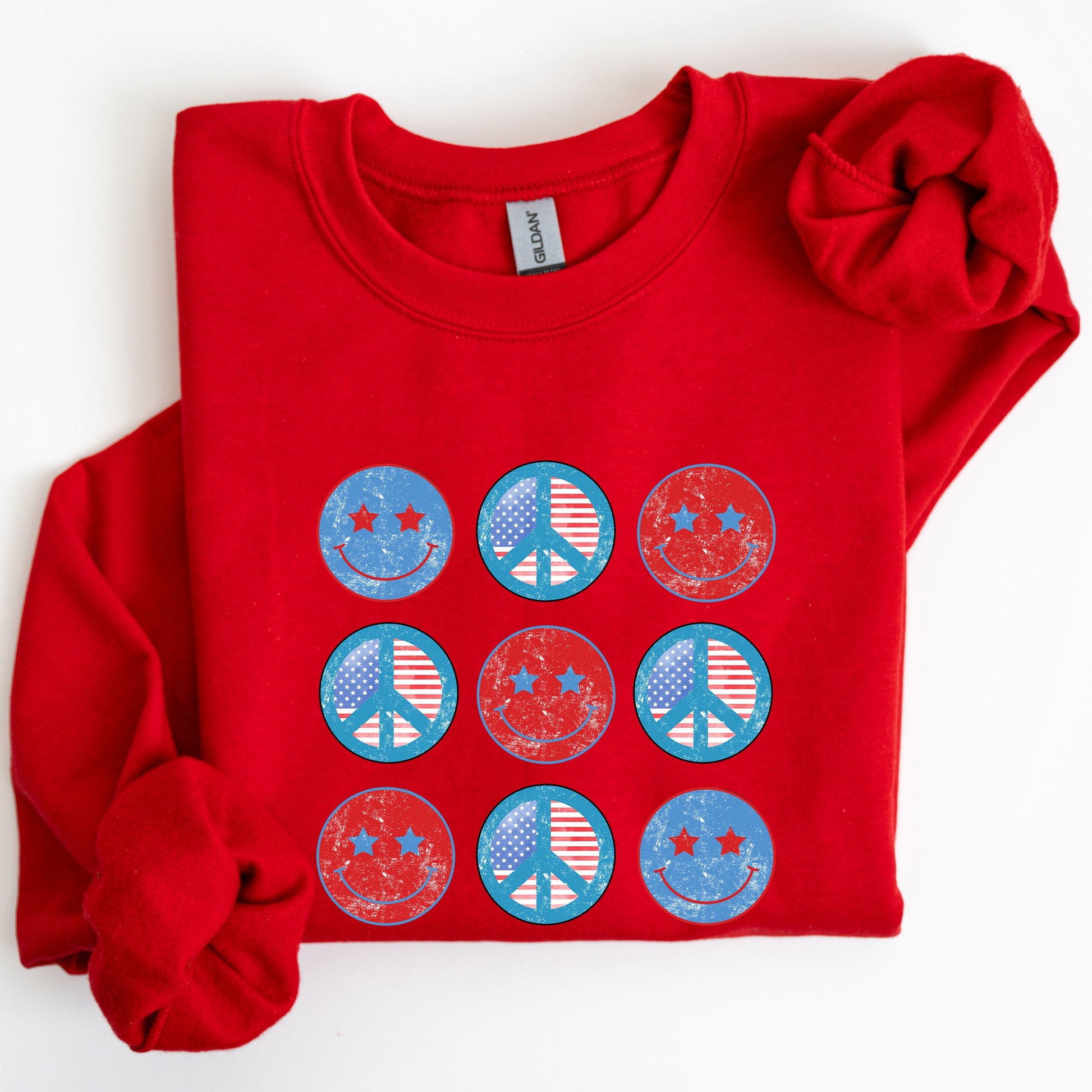 Embrace your love for America with our Retro Patriotic Smiley, Flag, America, Peace, Sweatshirt. This stylish and comfortable sweatshirt blends the spirit of patriotism with a fun, retro design. Perfect for those who want to showcase their pride in a unique way, this sweatshirt is a must-have for anyone looking to express their individuality while keeping cozy.