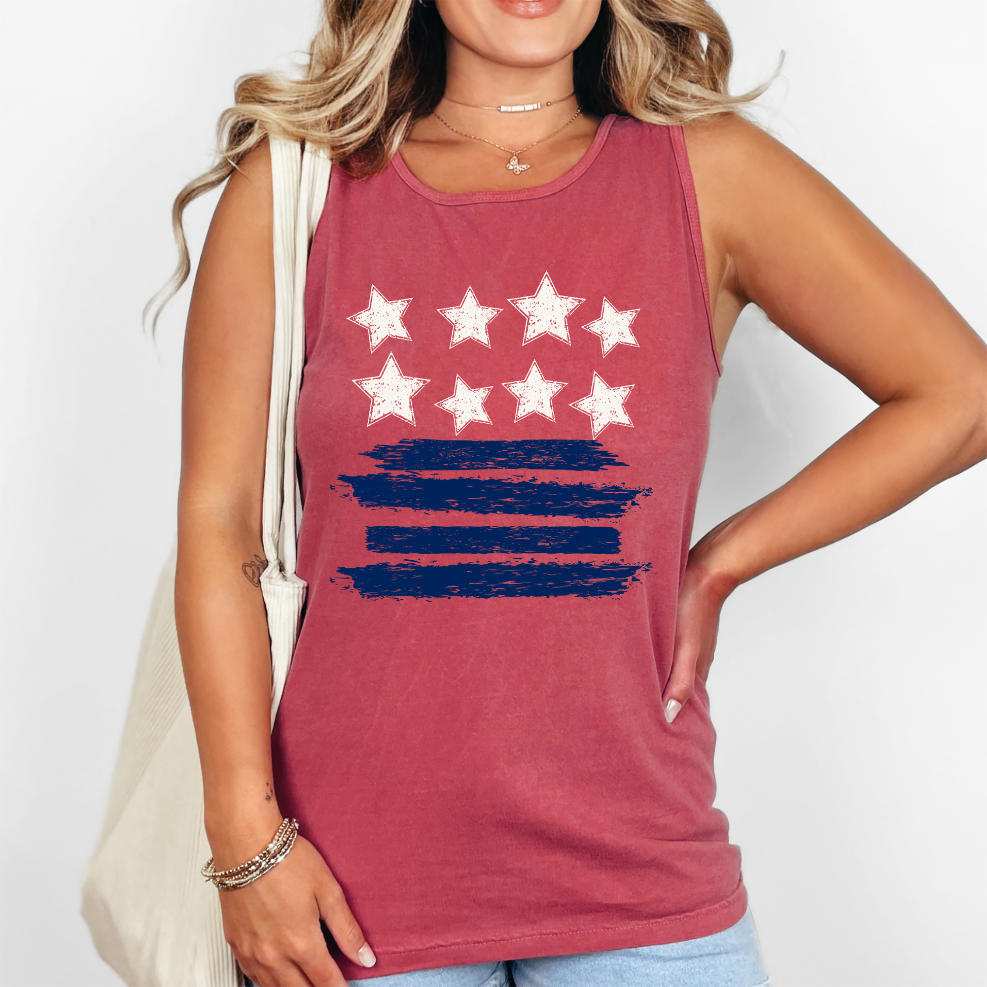 Make this Fourth of July unforgettable! Order your Retro Stars and Stripes Tank Top today and get ready to shine bright and patriotic all summer long!