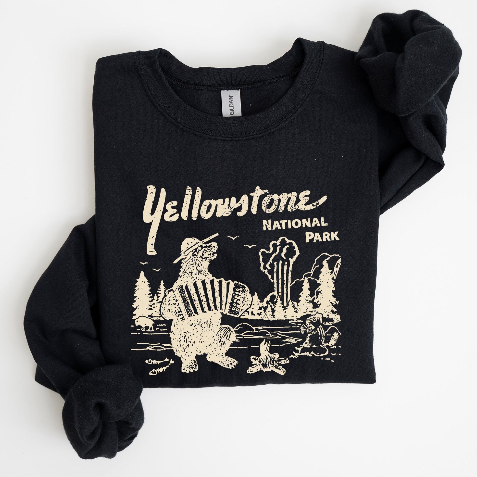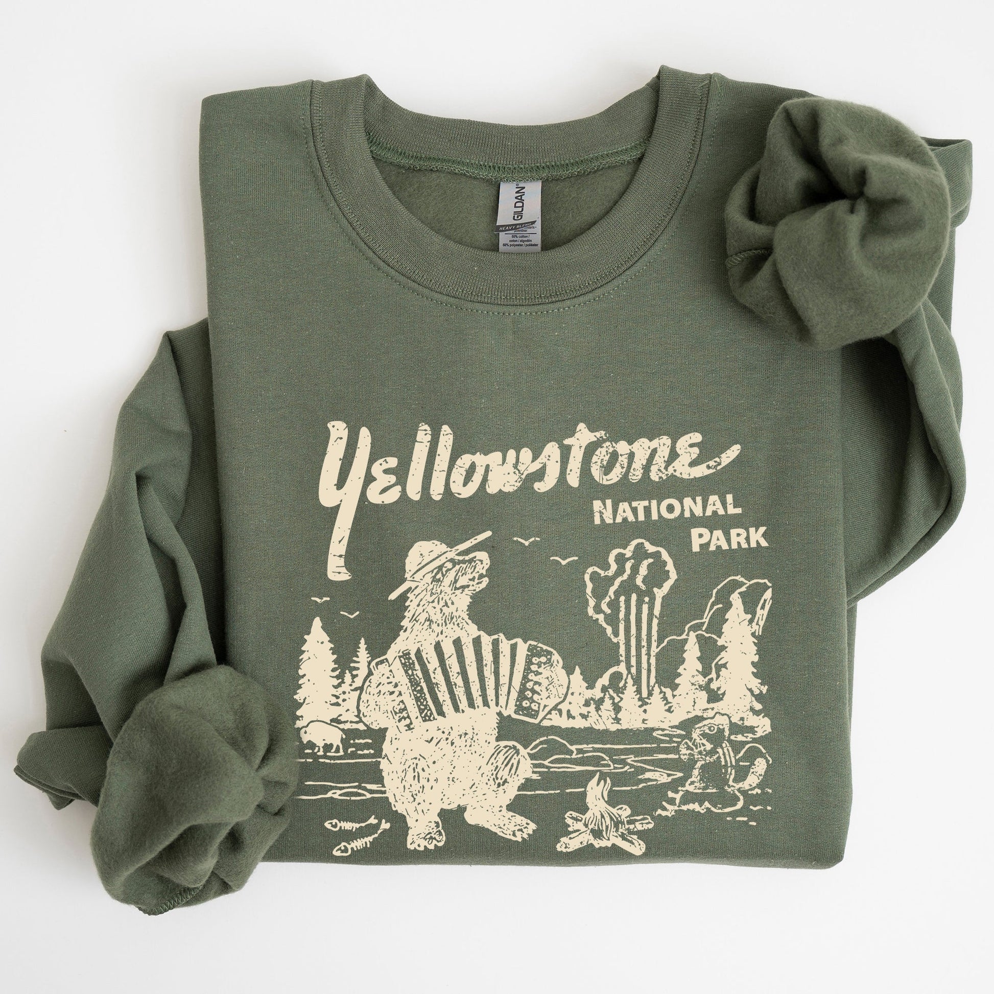 This Retro Yellowstone National Park, Bear, Chipmunk, Funny, Nature Sweatshirt pairs perfectly with jeans for a casual yet trendy look. Layer it over your favorite tee for a stylish twist, making it suitable for both outdoor adventures and cozy nights in. Whether you're hiking in the mountains or relaxing with friends, this sweatshirt is your go-to choice for comfort and style.
