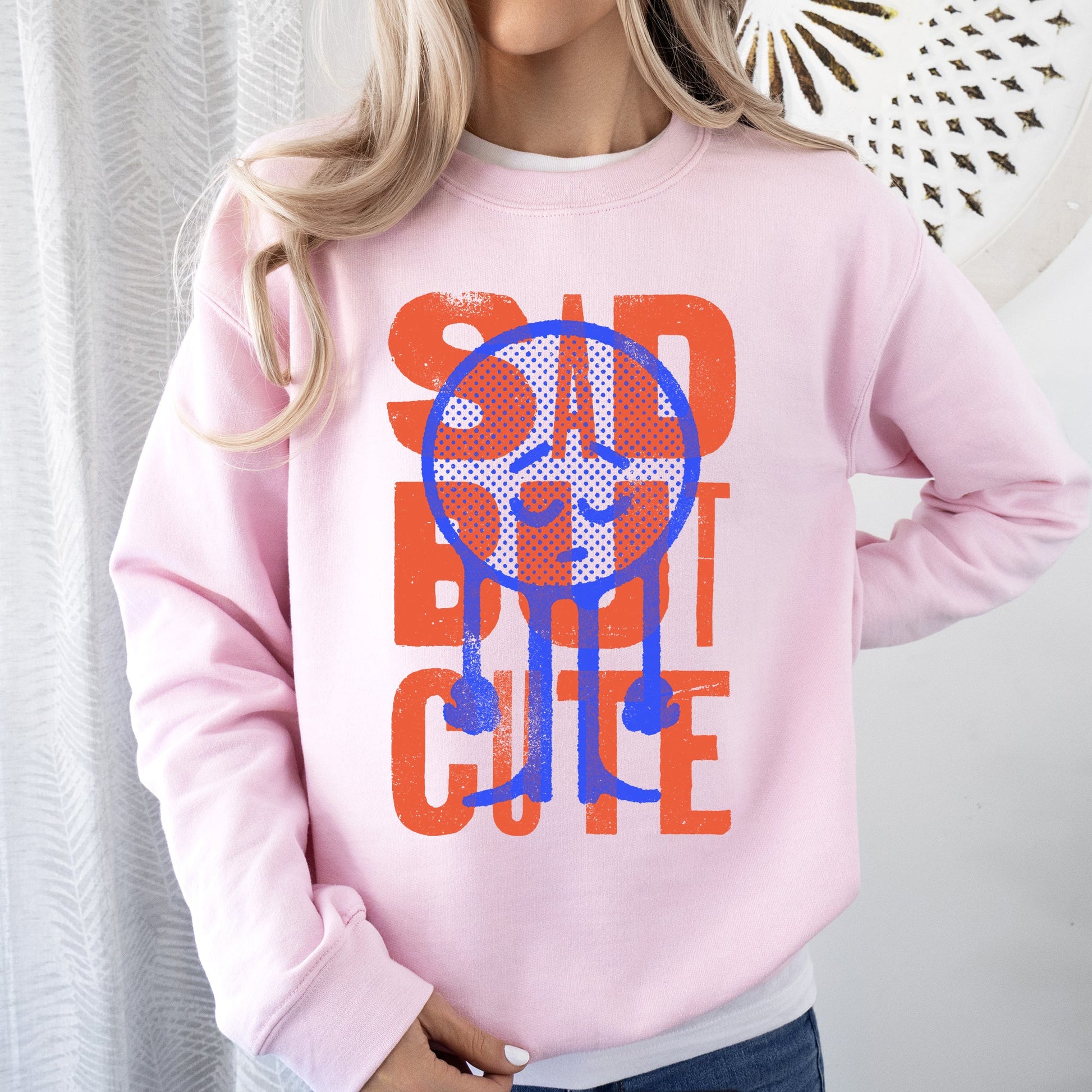 Sad But Cute, Mental Health, Smiley, Positivity, Funny, Sarcastic Sweatshirt