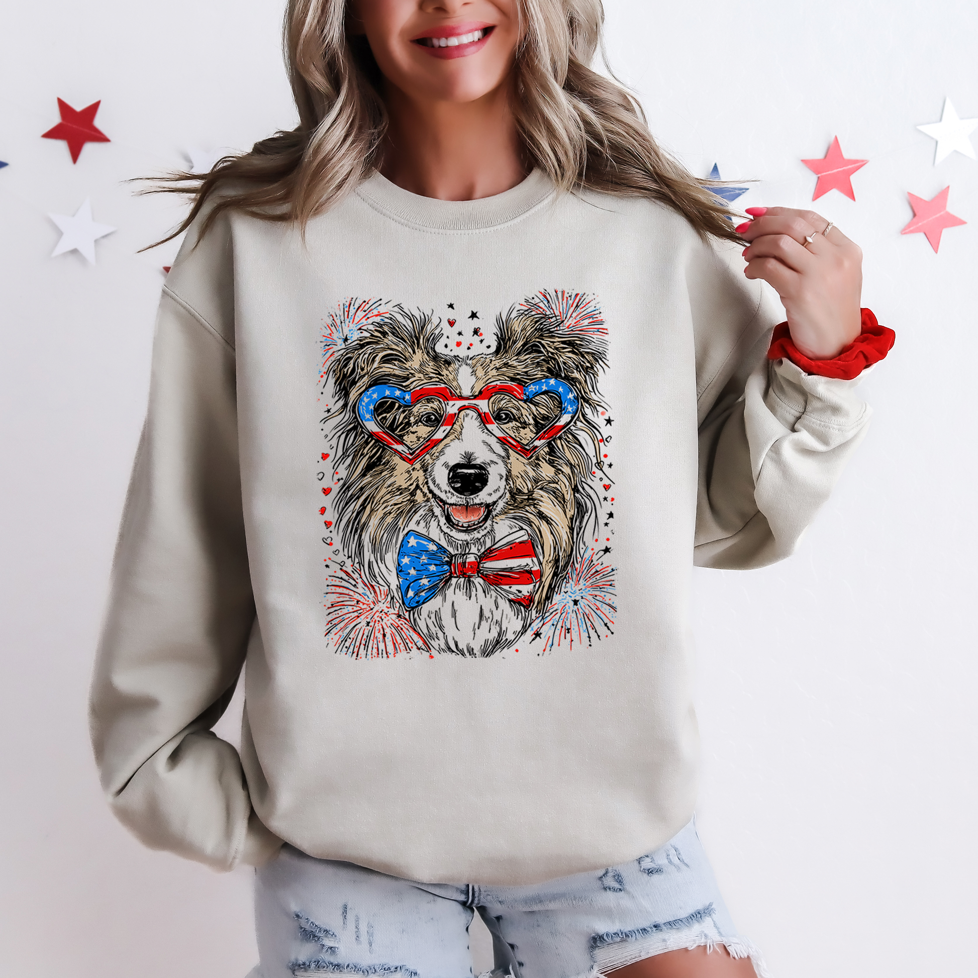 Sheltie, Shetland Sheepdog Patriotic Dog, USA, America, Pet Lover, 4th of July Sweatshirt
