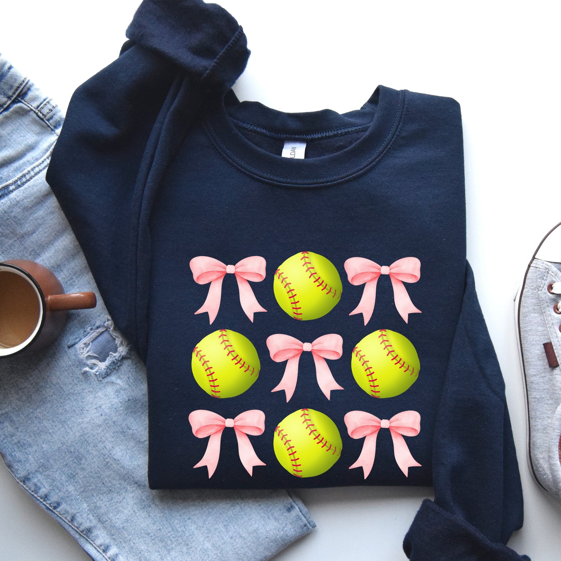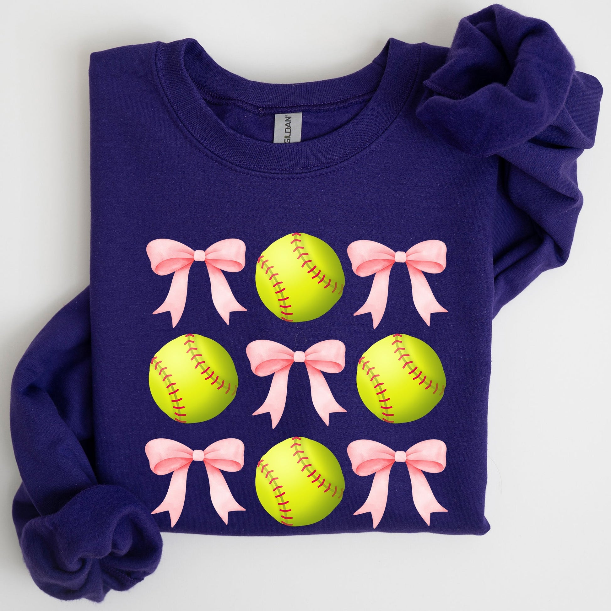 Softball, Pink Bows, Sports, Coquette Sweatshirt