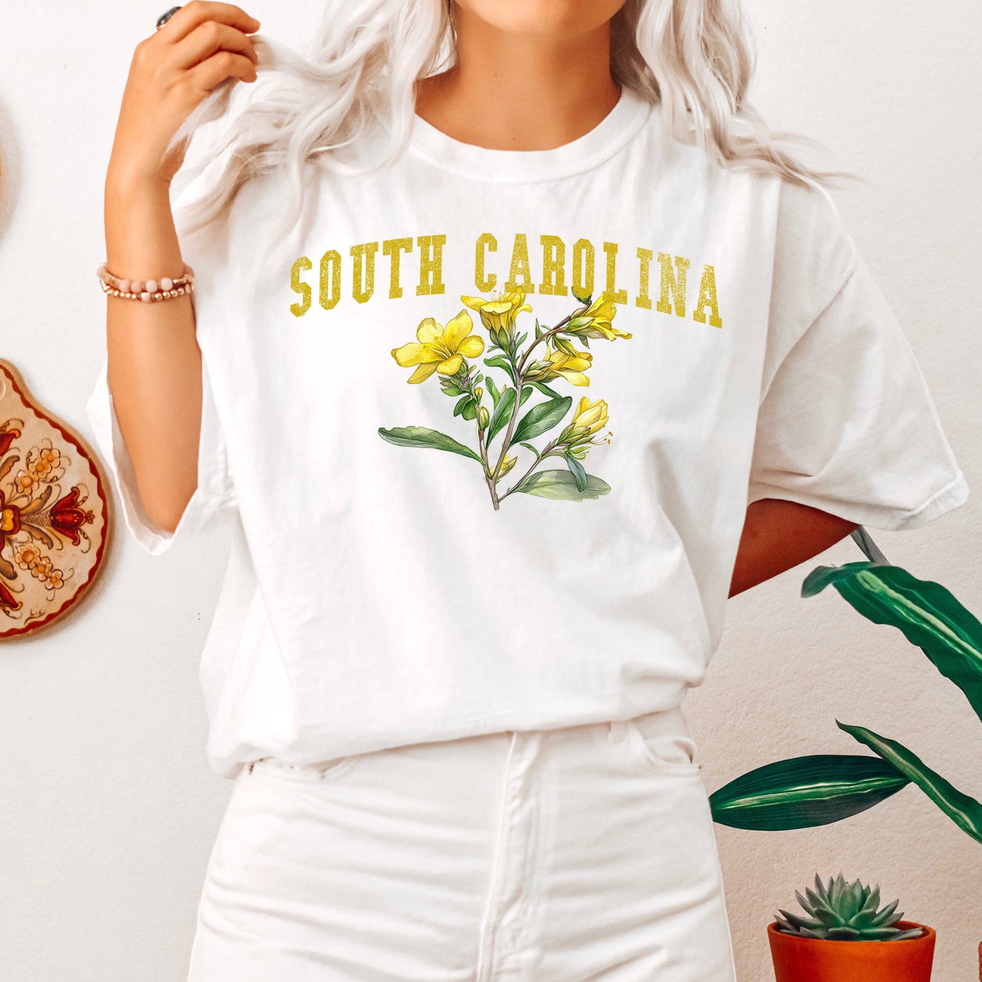 Embrace the charm of South Carolina with our South Carolina State Flower Comfort Colors T-shirt. This stylish graphic tee seamlessly blends a vintage aesthetic with modern comfort, making it a must-have for any wardrobe. Whether you're exploring the outdoors or heading to a casual gathering, this shirt showcases your love for the Palmetto State while keeping you comfortable all day long.