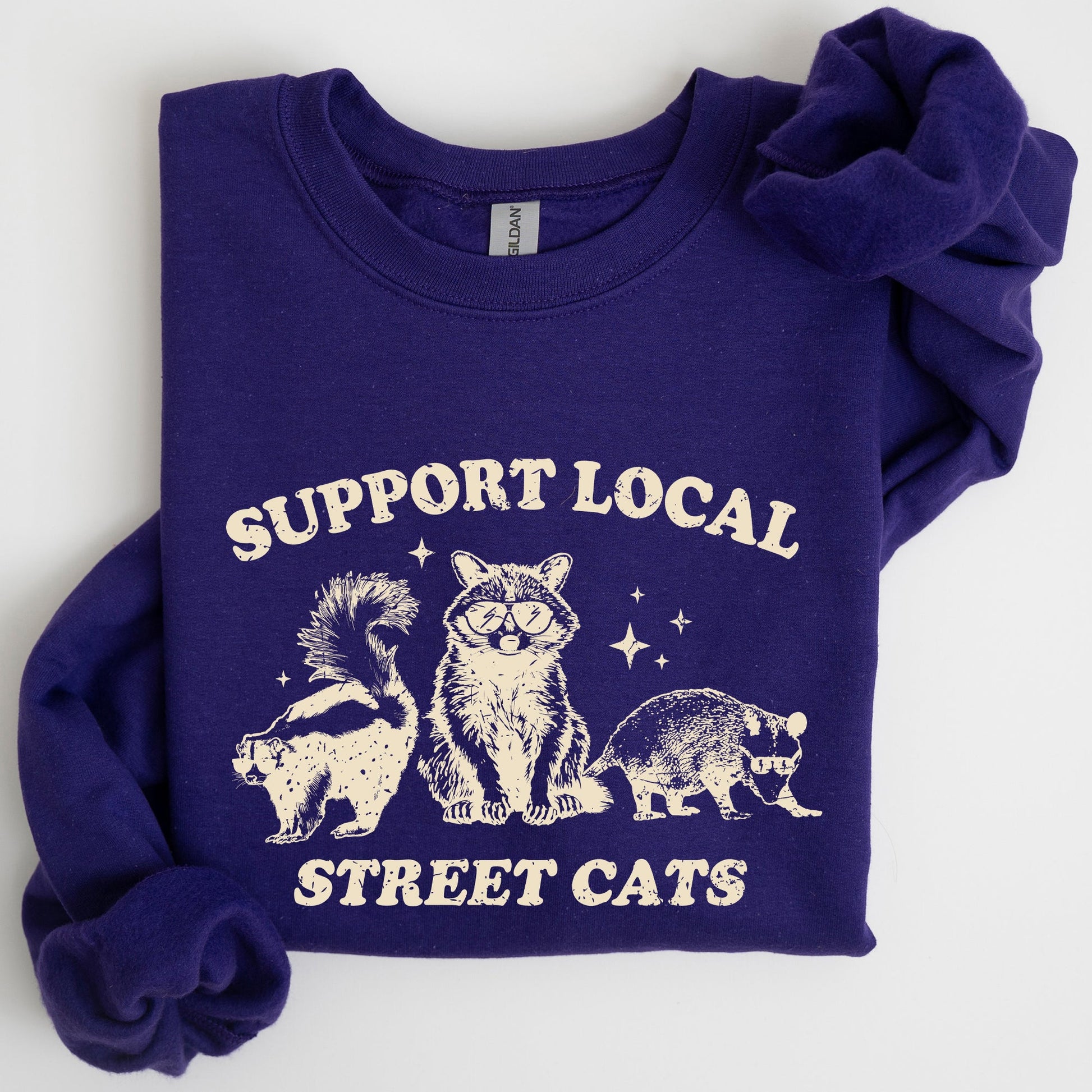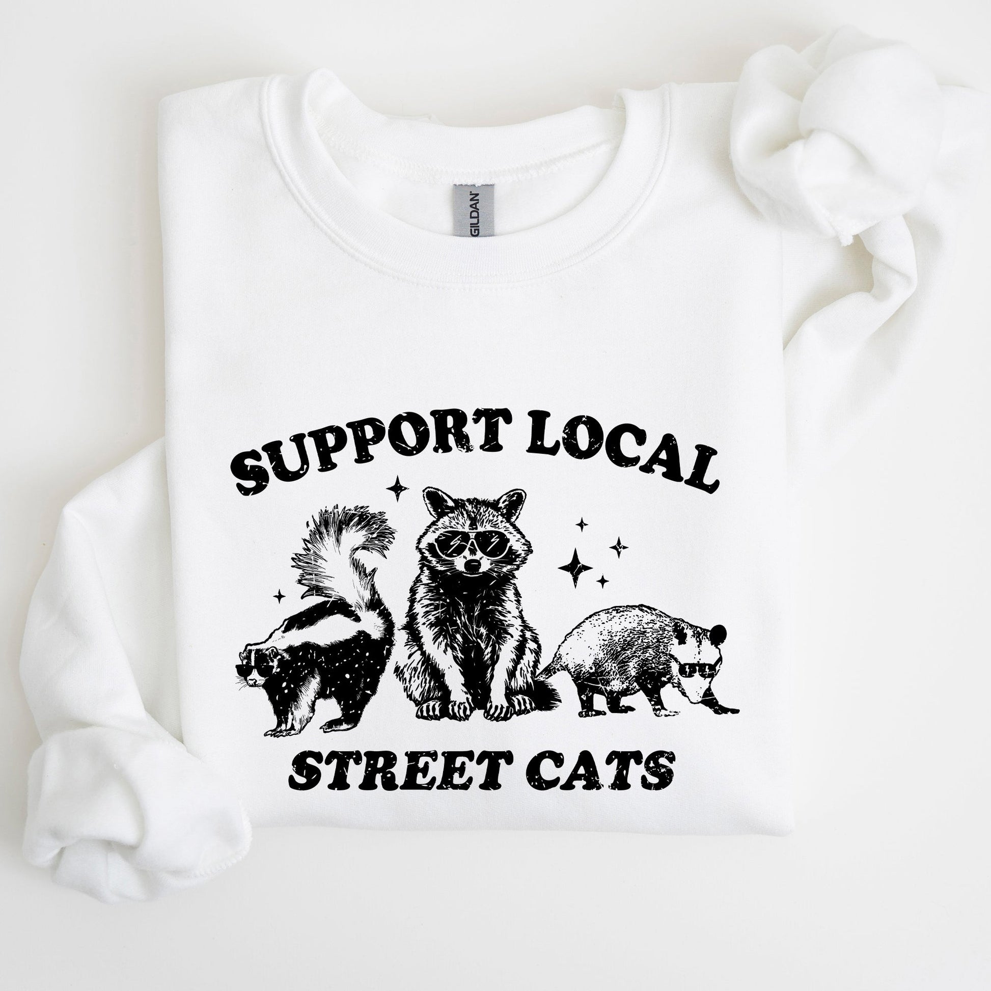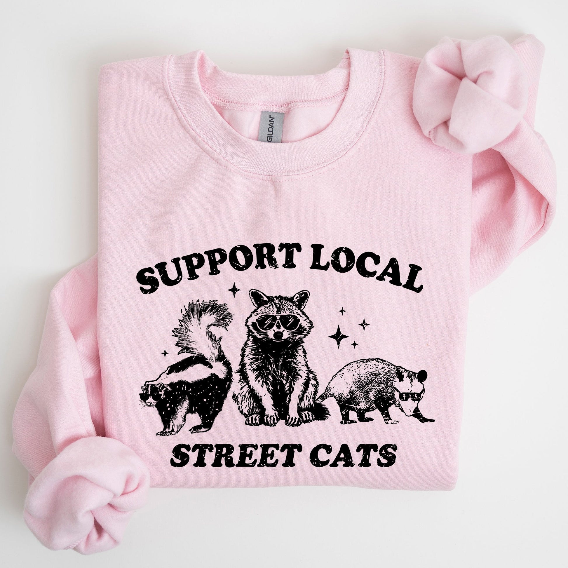 Support Local Street Cats, Raccoon, Skunk, Possum, Meme, Funny, Aesthetic Sweatshirt