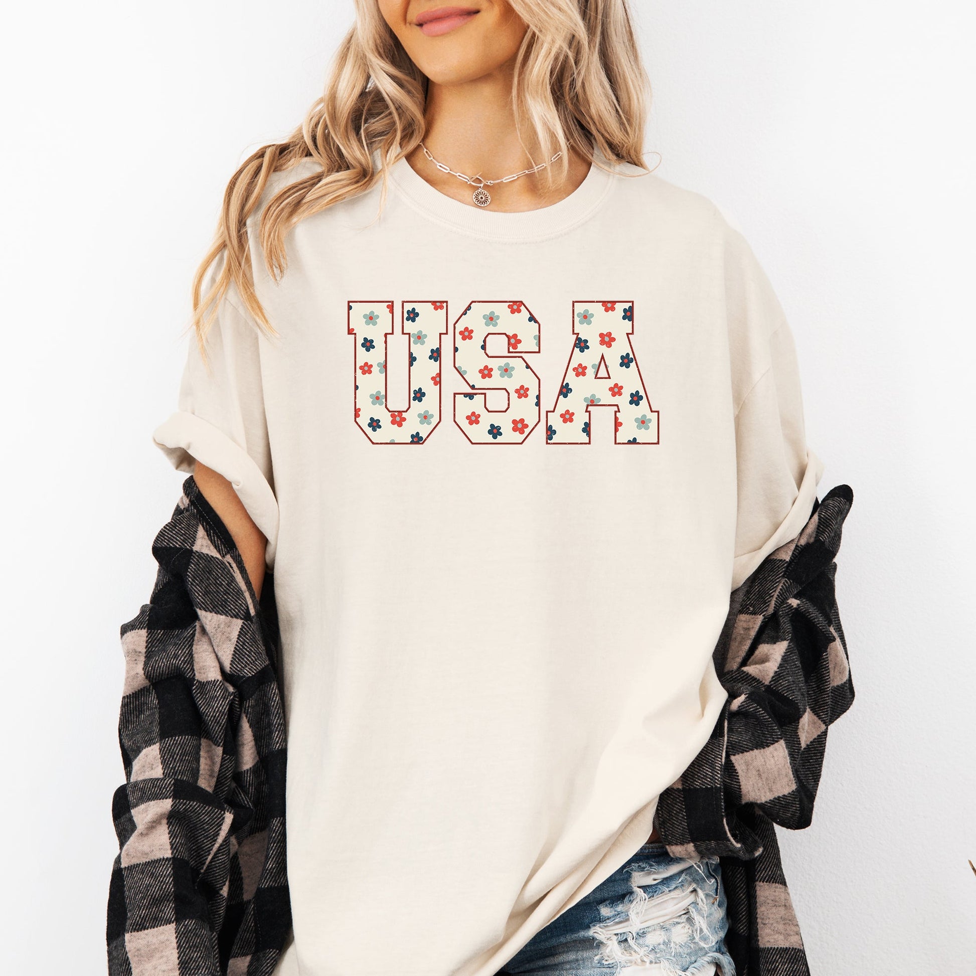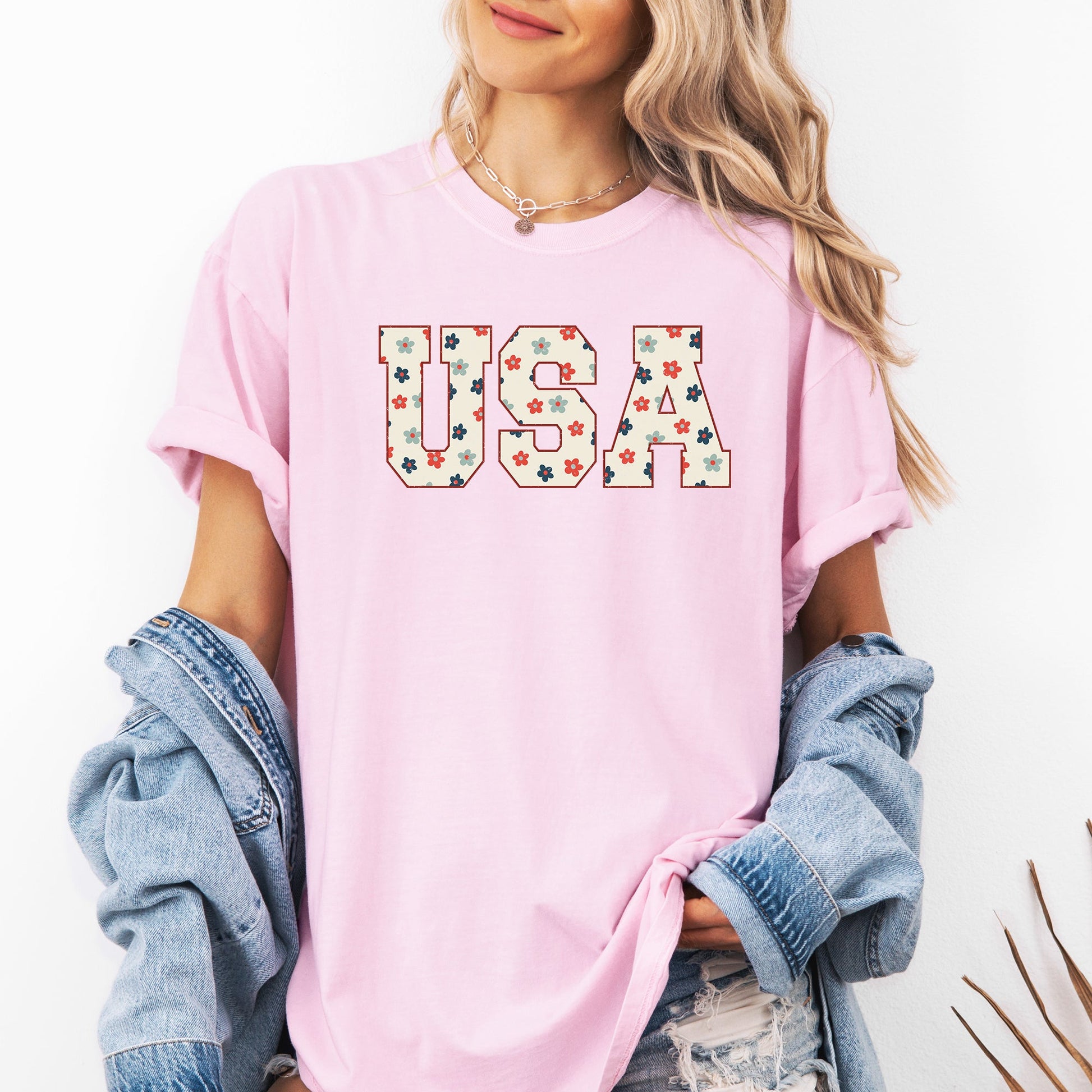 USA Flowers, Minimalist, Patriotic, America, 4th of July Tshirt Comfort Colors T-Shirt