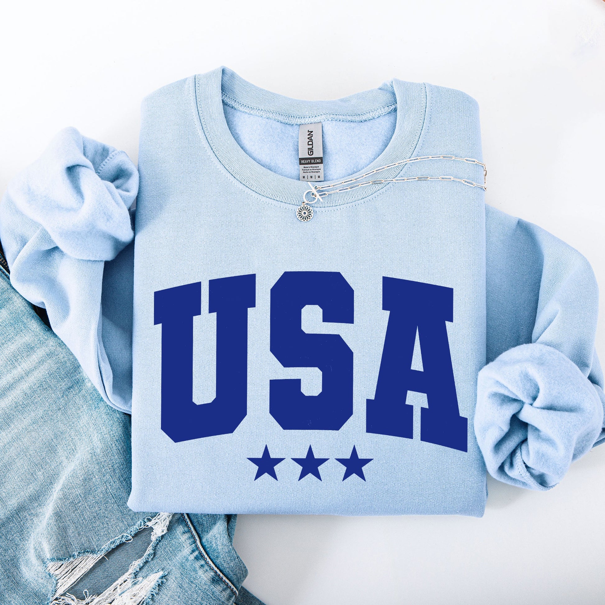 This USA, Stars, Retro, Patriotic, America, 4th of July Sweatshirt pairs perfectly with your favorite jeans for a relaxed yet trendy look. It can also be layered over shirts for added style and warmth. Ideal for casual outings, festive celebrations, or cozy nights in, this sweatshirt is a versatile addition to your wardrobe.