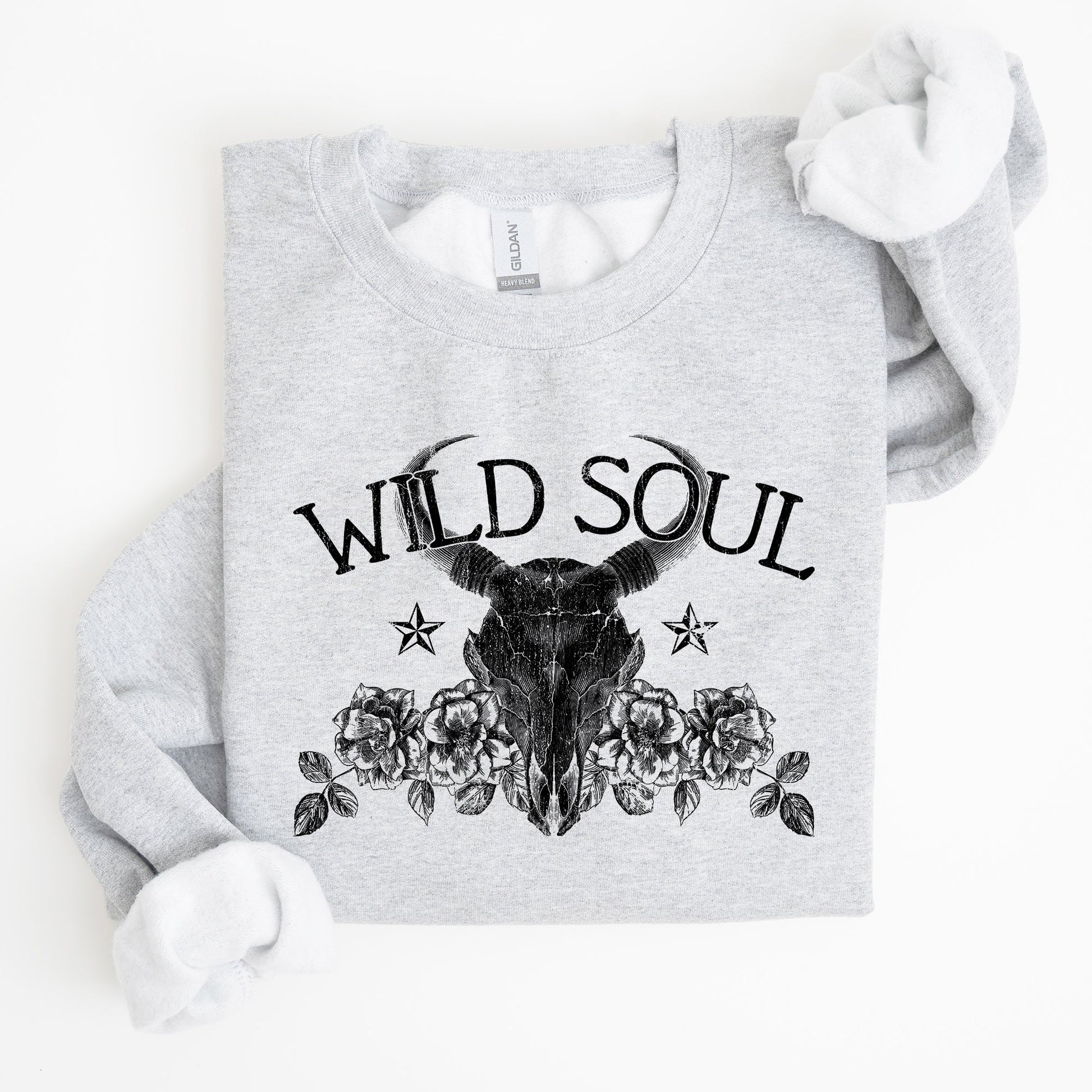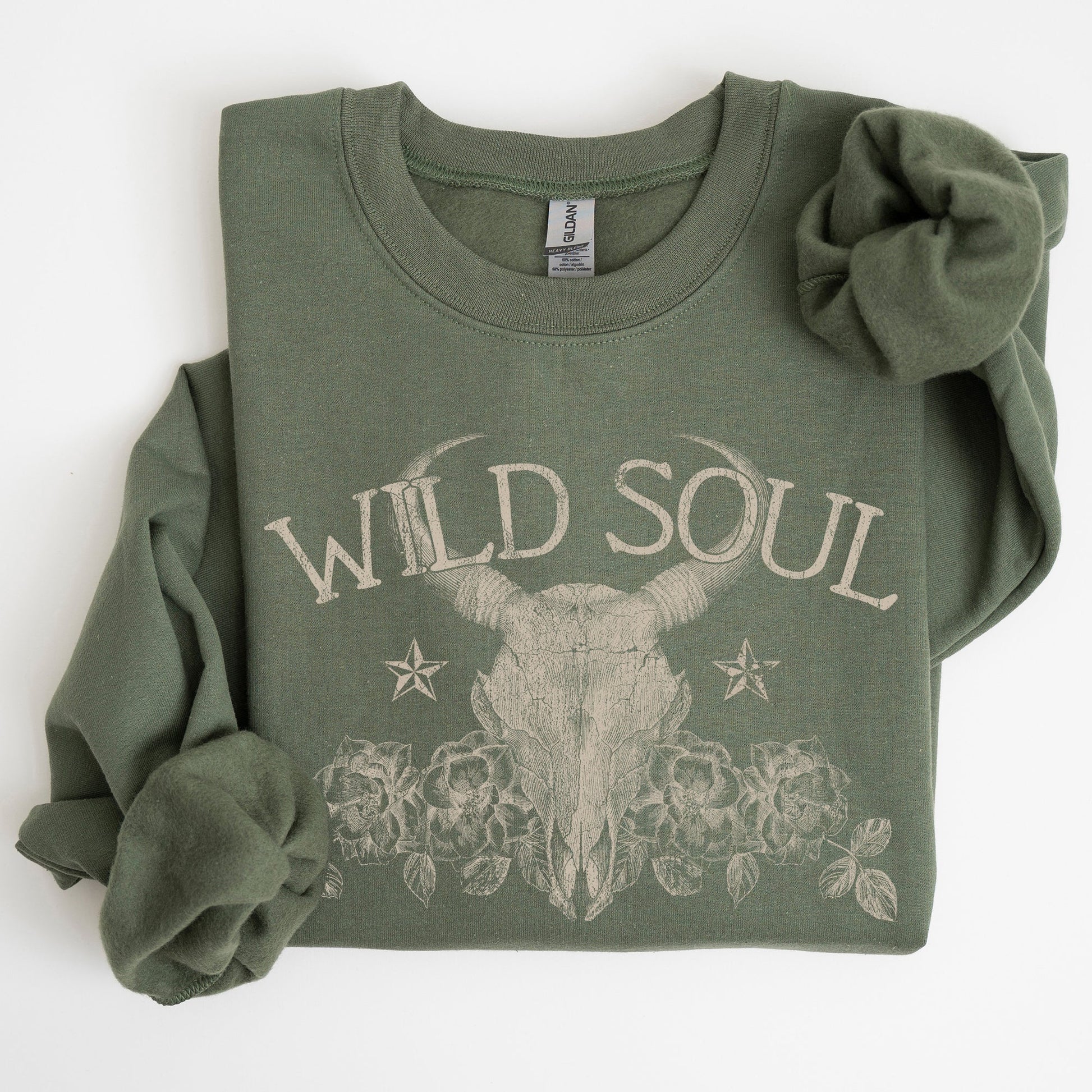 Wild Soul, Cow Skull, Western, Desert Sweatshirt