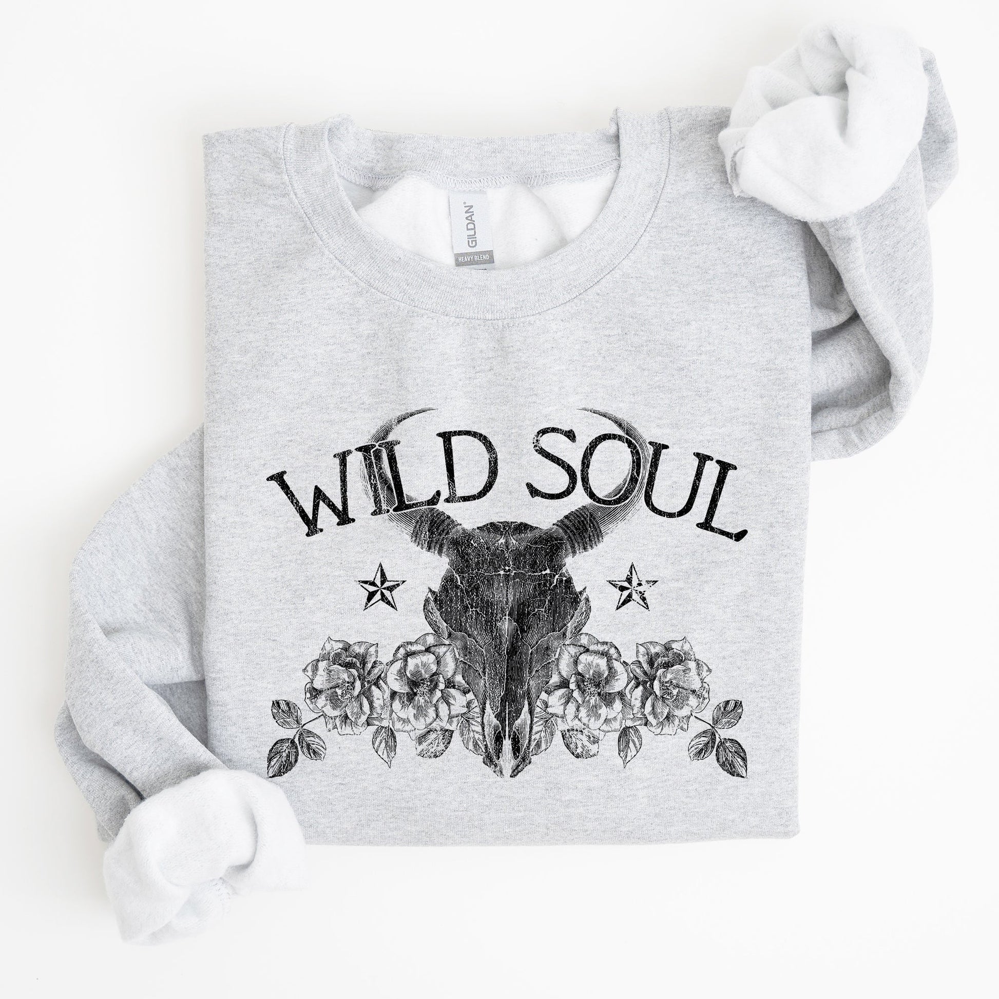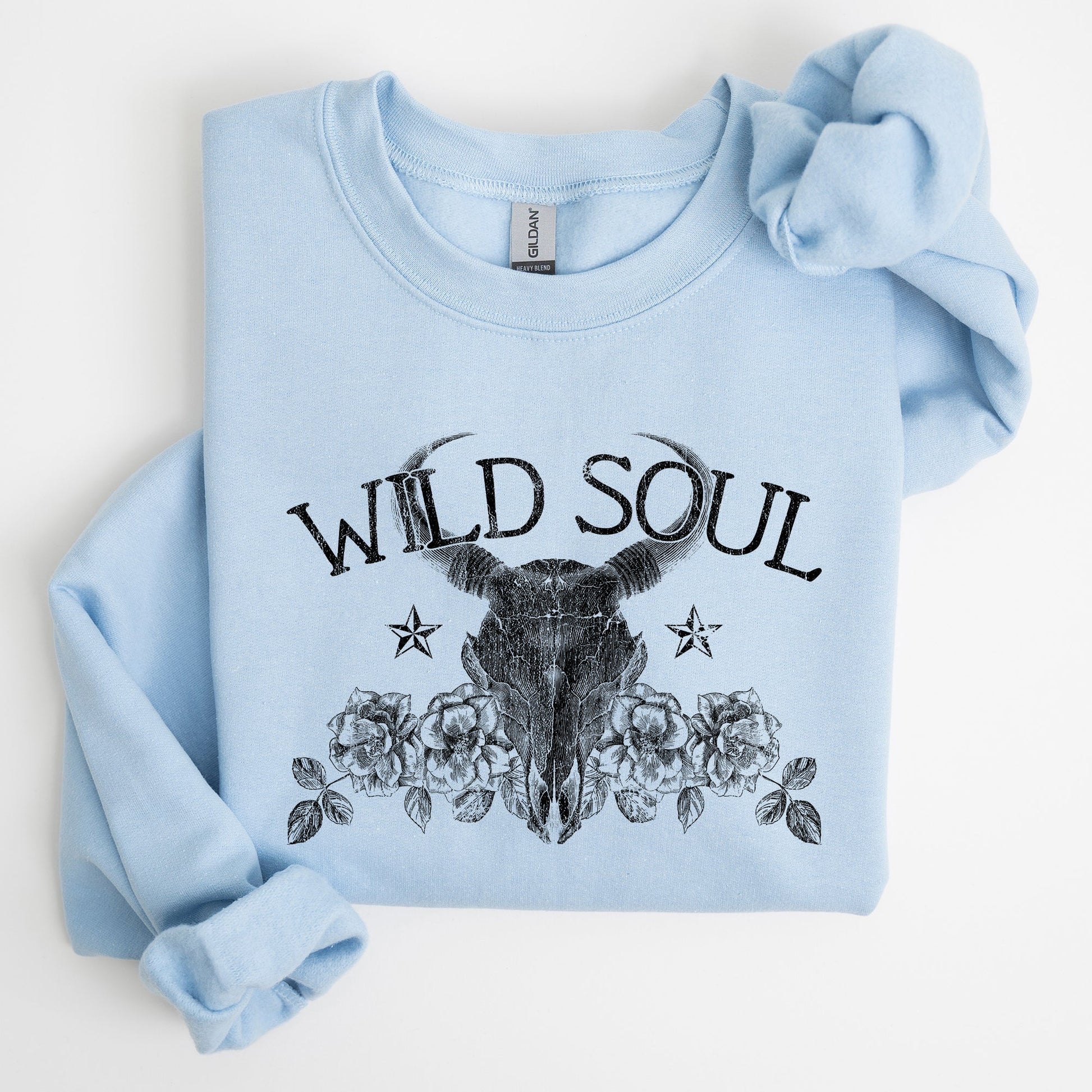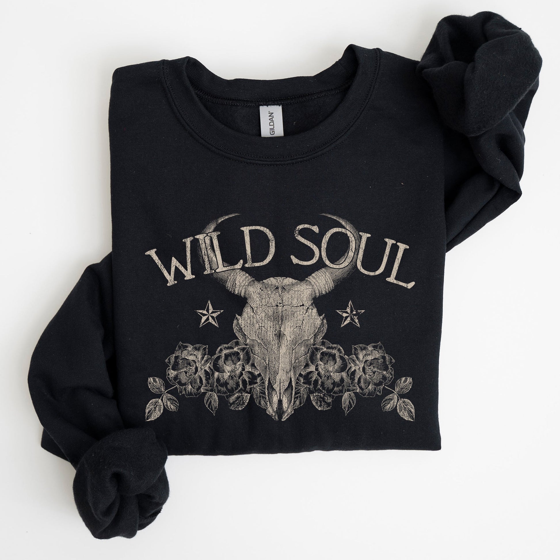 Wild Soul, Cowboy, Skull, Roses, Country, Cowgirl Sweatshirt